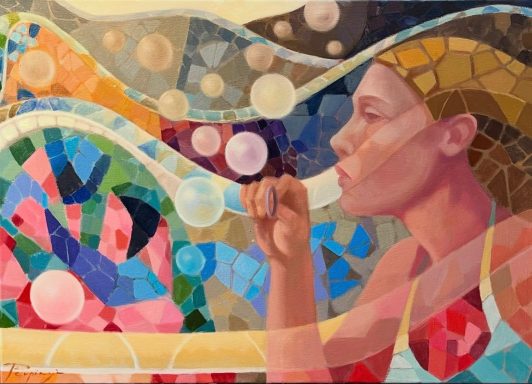 The first engine that pushes me to paint is the "DESIRE OF PLEASURE": wide volutes of smoke of a cigarette rather than a cigar, the intense red of berries or a cherry, or even the pleasure for the scent of a good glass of wine or for the aroma of a cup of tea...and it is in my long journeys to distand lands that I absorb the playful aspect of new cultures and pour it into my paintings while maintaining the rigour and meticulousness of hyperrealistic technique.